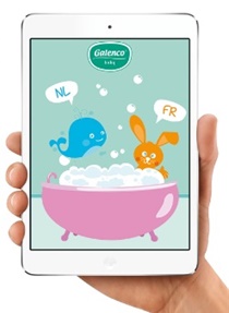With the new free Galenco app, you can let your toddler enjoy the fun adventures of Lou and Louise in the bathroom. The app has a bathroom theme with a number of elements like the bath, a baby bath cushion and the bathroom washbasin. All the animations fit in with how infants perceive the world and are very familiar to them. The app is also very intuitive and aimed specifically at experiences: if the toddler taps on or swipes an object, an animation of Lou and Louise appears or their voices are heard.